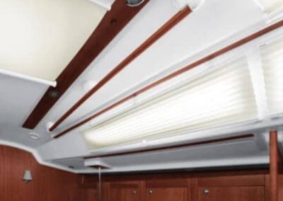 Ciekawe rozwiązanie stanowią rolety dzień-noc. To także rolety materiałowe, ale ich budowa jest dość szczególna; złożone są bowiem z naprzemiennie ułożonych w poziomie pasów materiału – siateczki, przepuszczającej światło oraz pasma w wybranym przez Klienta kolorze, które pochłania promienie słoneczne. Podczas pracy rolety pasy przesuwają się równolegle wzajemnie względem siebie, dając pożądany efekt – całkowite zaciemnienie lub prześwit.